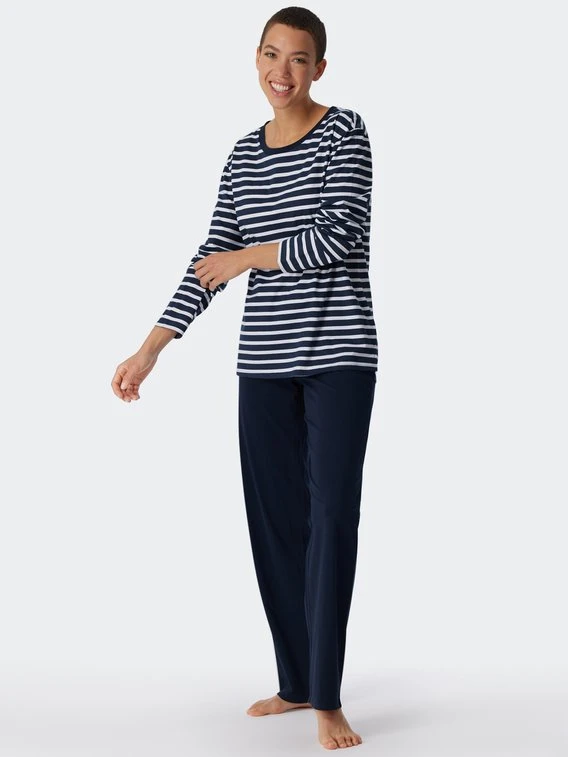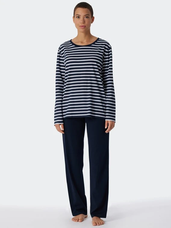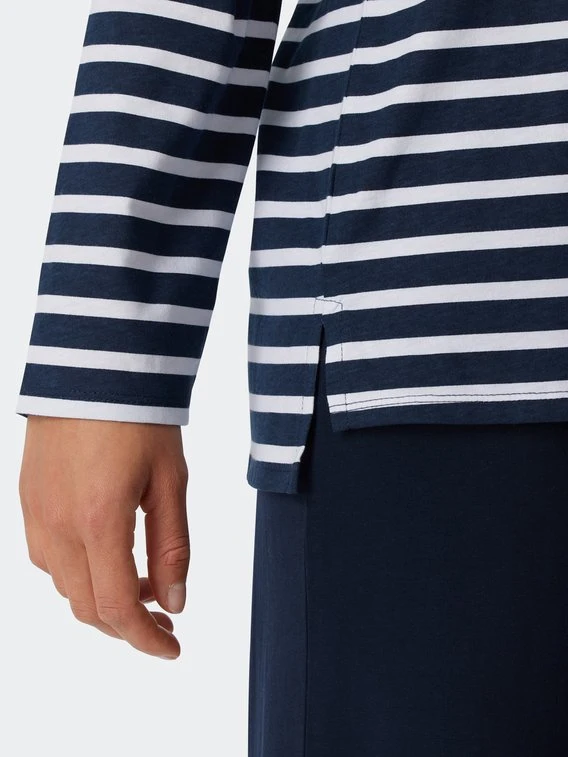 Die sportlichen Streifen machen seinen Charme aus: Dieser lange Pyjama von SCHIESSER aus der Serie “Essential Stripes” ist ein echtes Lieblingsstück! Das Set besteht aus 100% Bio-Baumwolle, die den Körper bequem sanft umschmeicheln. Das gestreifte Longsleeve sieht nicht nur gut aus, sondern ist dank des etwas weiteren Rundhalsausschnitts und der seitlichen Schlitze am Saum auch komfortabel. Dazu passt die unifarbene Hose mit elastischem Bund.