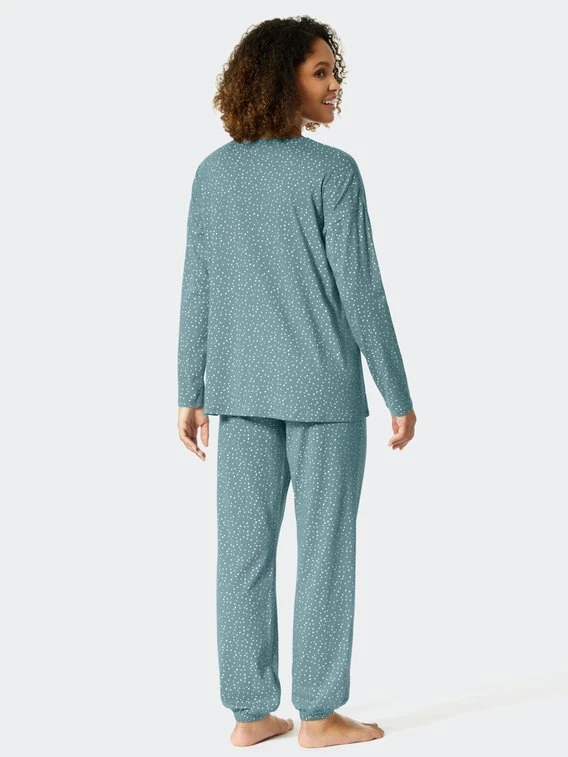 Höchster Komfort kombiniert mit maximaler Bewegungsfreiheit, so präsentiert SCHIESSER den Pyjama aus der „Minimal Comfort Fit“ Serie. Der lange Pyjama überzeugt nicht nur durch sein angenehmes, nachhaltiges Single Jersey Material, sondern auch durch seinem modernen Minimaldruck. Dank der modernen und relaxten Silhouette in A-Linie, weitere Ärmel und Hose eignet sich der Pyjama auch für größere Größen.