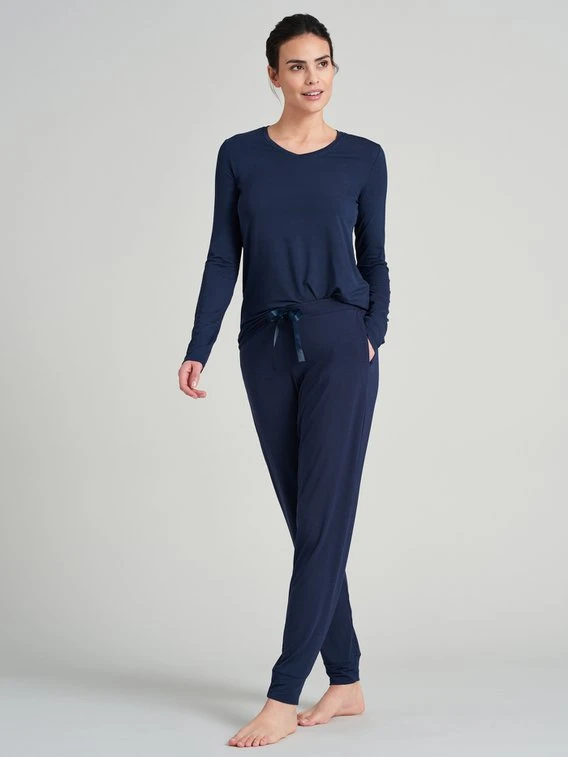 Diese Bündchen-Hose von SCHIESSER aus der „Mix & Relax“ Serie kann sowohl zum Schlafen als auch zum Entspannen getragen werden, zudem ist sie individuell kombinierbar. Modal und Elasthan sorgen für ein angenehmes Tragegefühl. Das unifarbene Design gibt der langen Hose einen modischen und femininen Look.