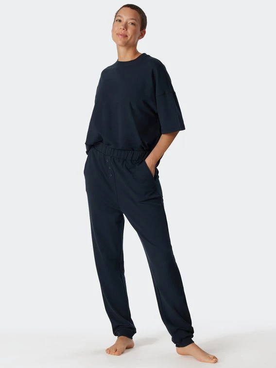 Soft und anschmiegsam: Die lange Hose von SCHIESSER aus der “Mix & Relax” Kollektion ist ein echter Wellness-Liebling! Elastische Sweatware aus Baumwolle und Tencel mit hohem Recyclinganteil liegt nicht nur besonders weich auf der Haut, sondern ist auch nachhaltig. Der Look mit dem etwas weiteren Schnitt ist ebenso angesagt wie bequem. Weitere Komfortdetails sind die seitlichen Taschen und der elastische Bund mit glänzenden Zierknöpfen.