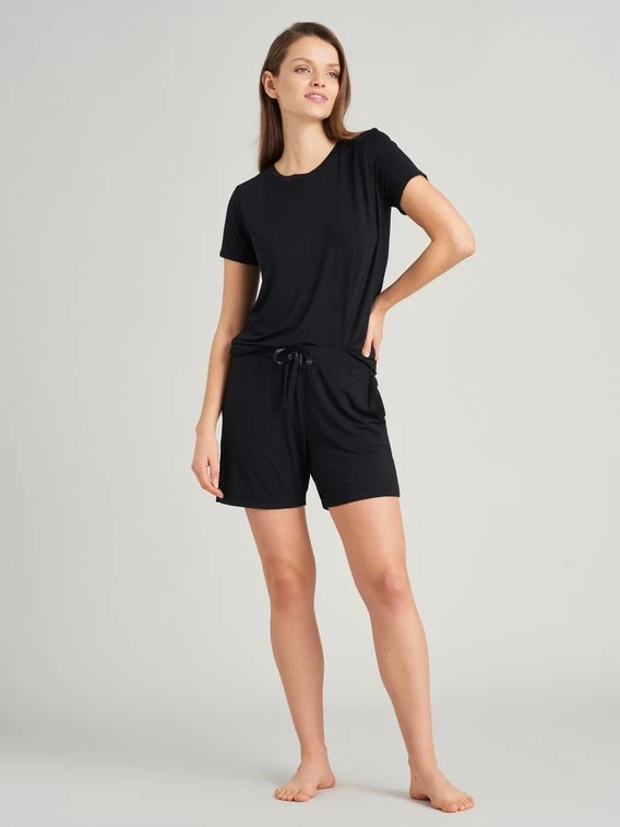 Lässige Shorts von SCHIESSER aus der „Mix & Relax“ Serie für Damen. Die Hose besticht durch ihre weiche Materialzusammensetzung, die für ein angenehmes Hautgefühl sorgt. Aufgrund des unifarbenen Designs kann die Hose perfekt zu gemusterten Oberteilen getragen werden.