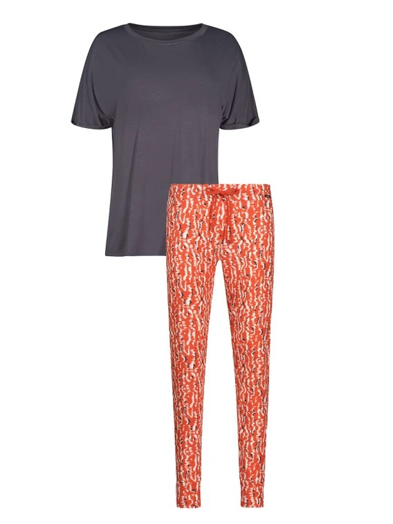 Pyjama-Set von SKINNY aus der “Every Night Pyjama” Serie für relaxte Momente. Das Set bestehend aus einem unifarbenem Viskose-Oberteil und einer gemusterte Hose aus weichem Baumwoll-Mix verspricht ein sanftes Hautgefühl und absoluten Tragekomfort. Der lockere Schnitt von T-Shirt und Pants eignet sich hervorragend zum Relaxen und erholsame Nächte.