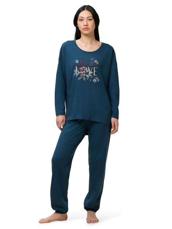 Warmer, langärmeliger TRIUMPH Pyjama aus hochwertigem Naturmaterial, der das Wohlbefinden und die Schlafqualität steigert. Die moderne Passform mit überschnittener Schulter und hochgezogenem Saum umschmeichelt die Silhouette spielerisch. Aus der beliebten Serie “Lounge-Me Cotton”.