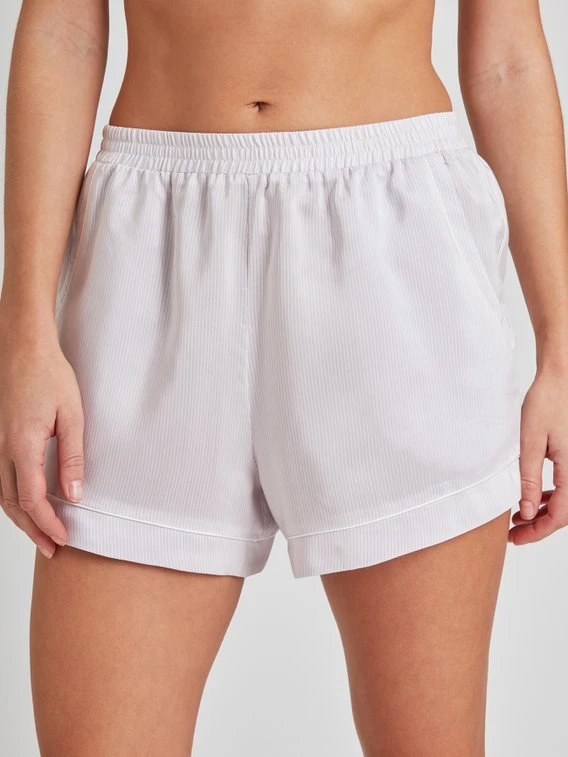 Die Shorts aus der “Feminine Stripes” Kollektion von ZIMMERLI begeistert mit einem eleganten Design und hochwertigsten Materialien. Das Gewebe aus Viskose und Seide bietet höchsten Tragekomfort und zeichnet sich durch eine glatte, weiche Haptik aus. Der bequeme Stretchbund ermöglicht zudem einen idealen Sitz der kurzen Loungehose.